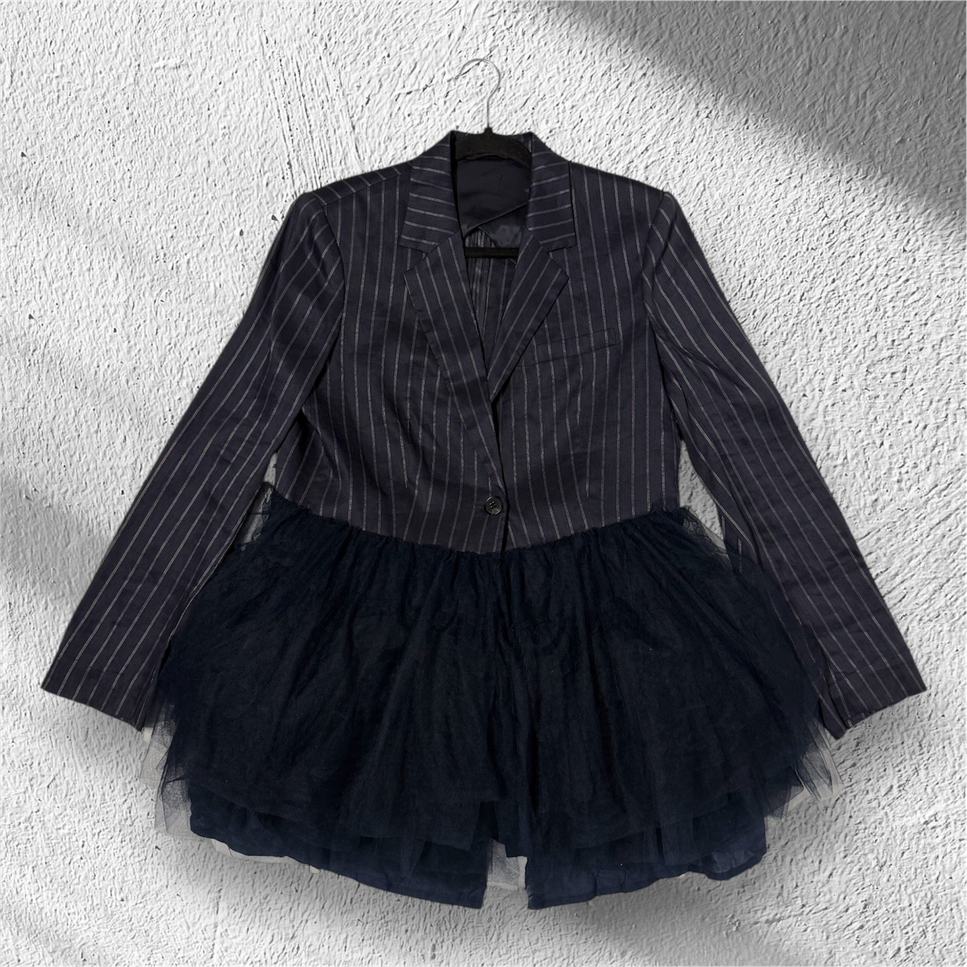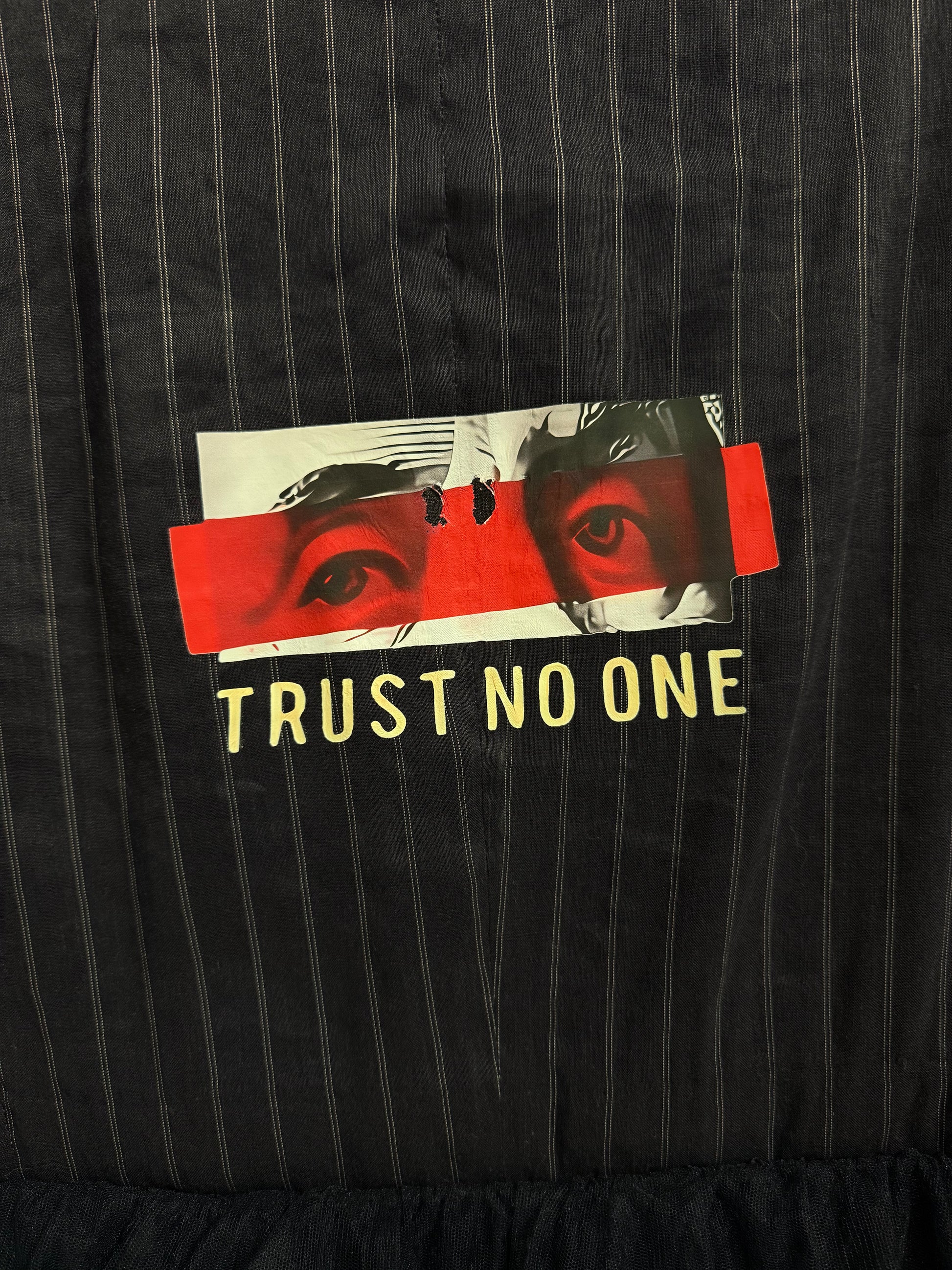 Blazer gessato e tulle ‘Trust no one’