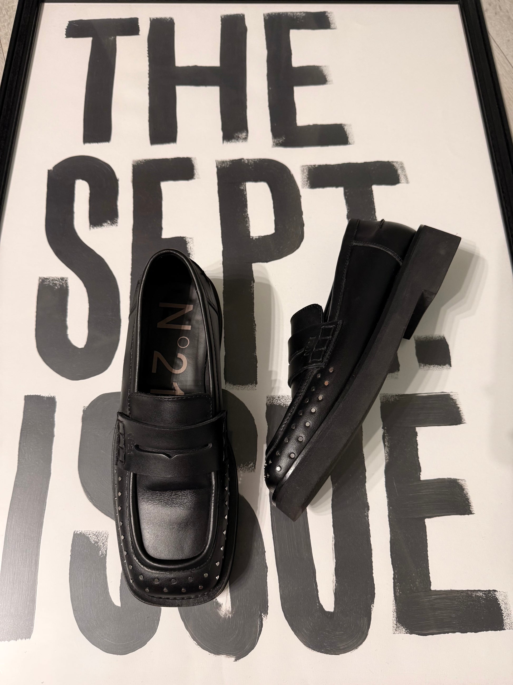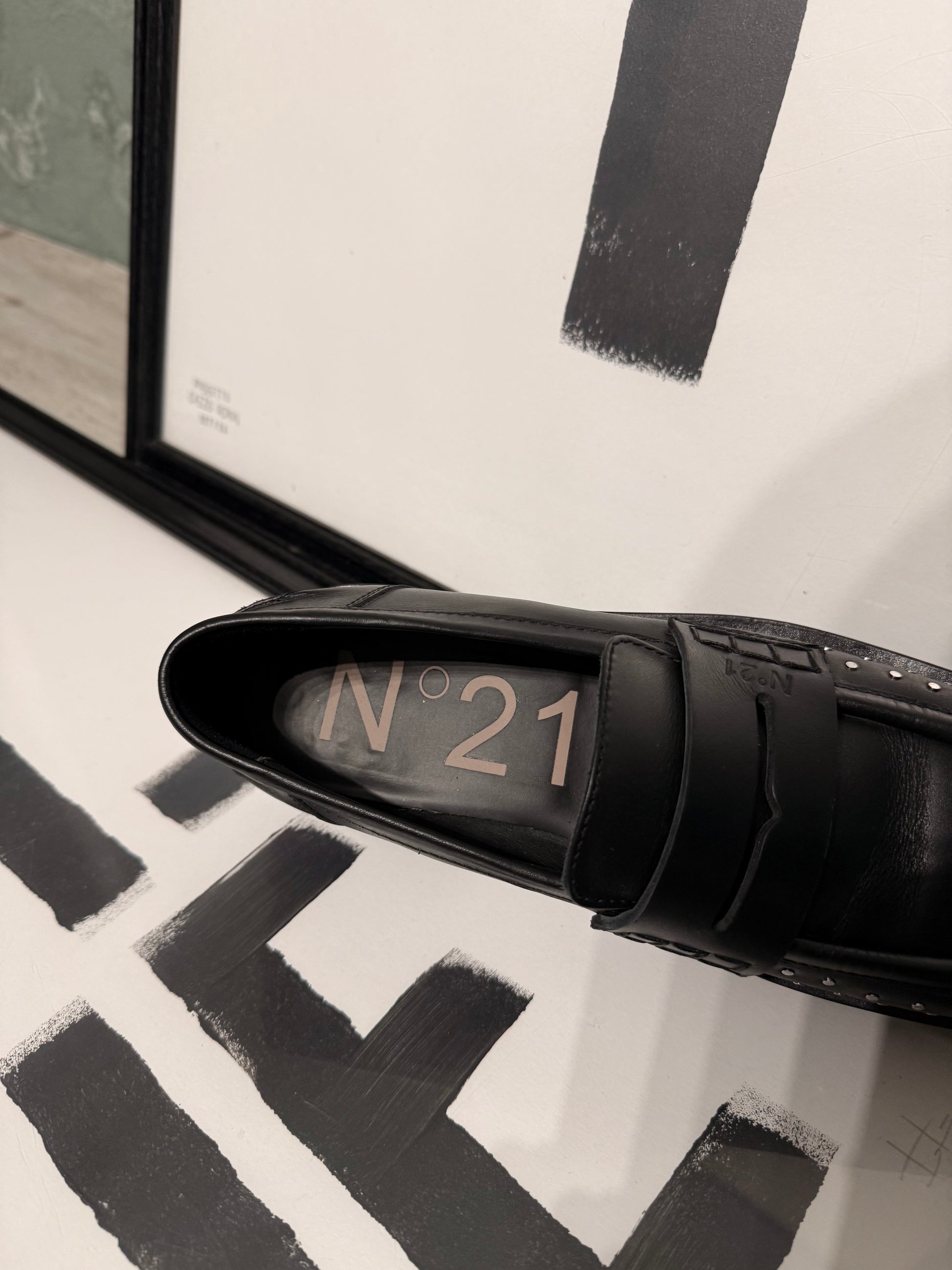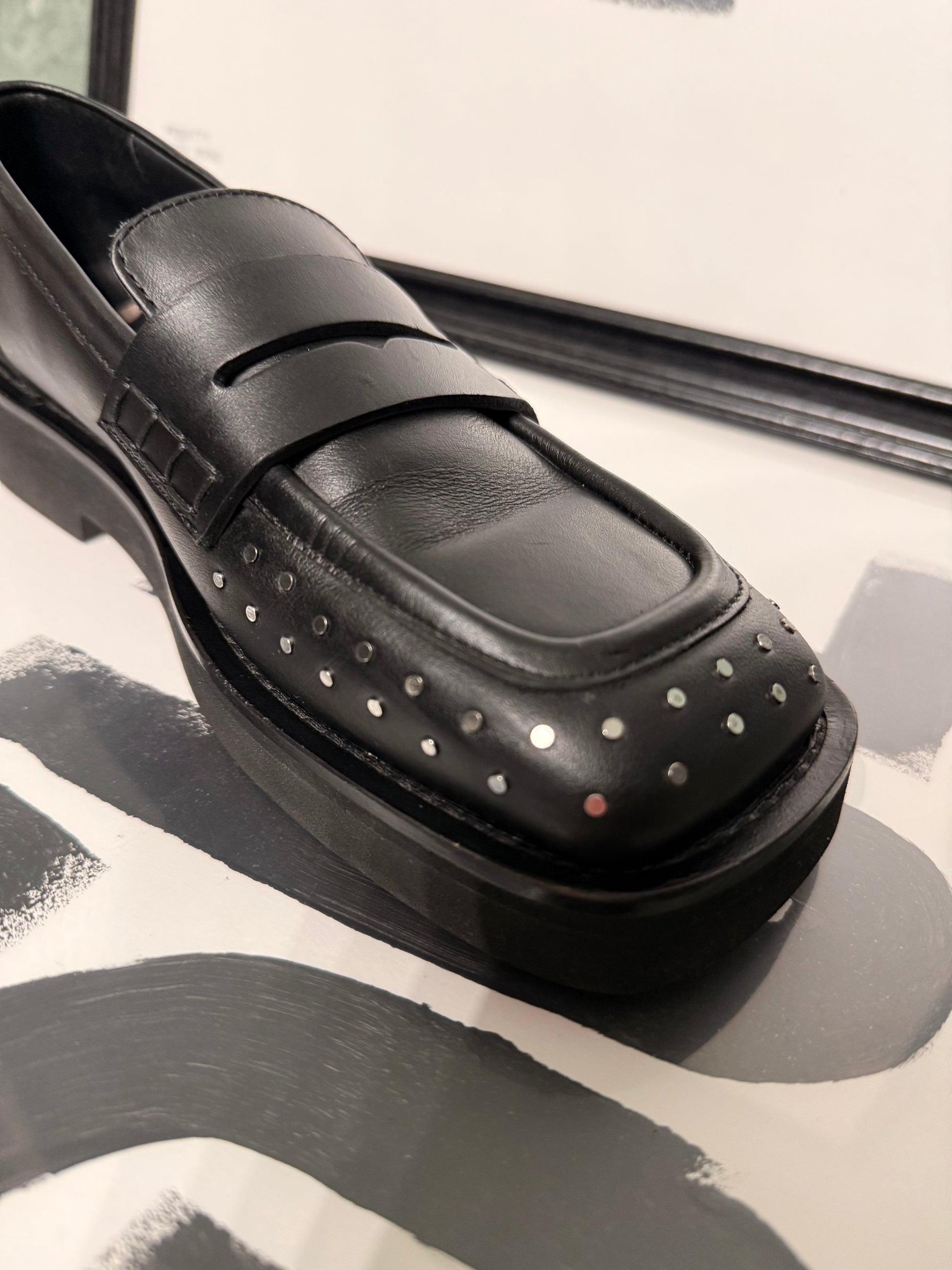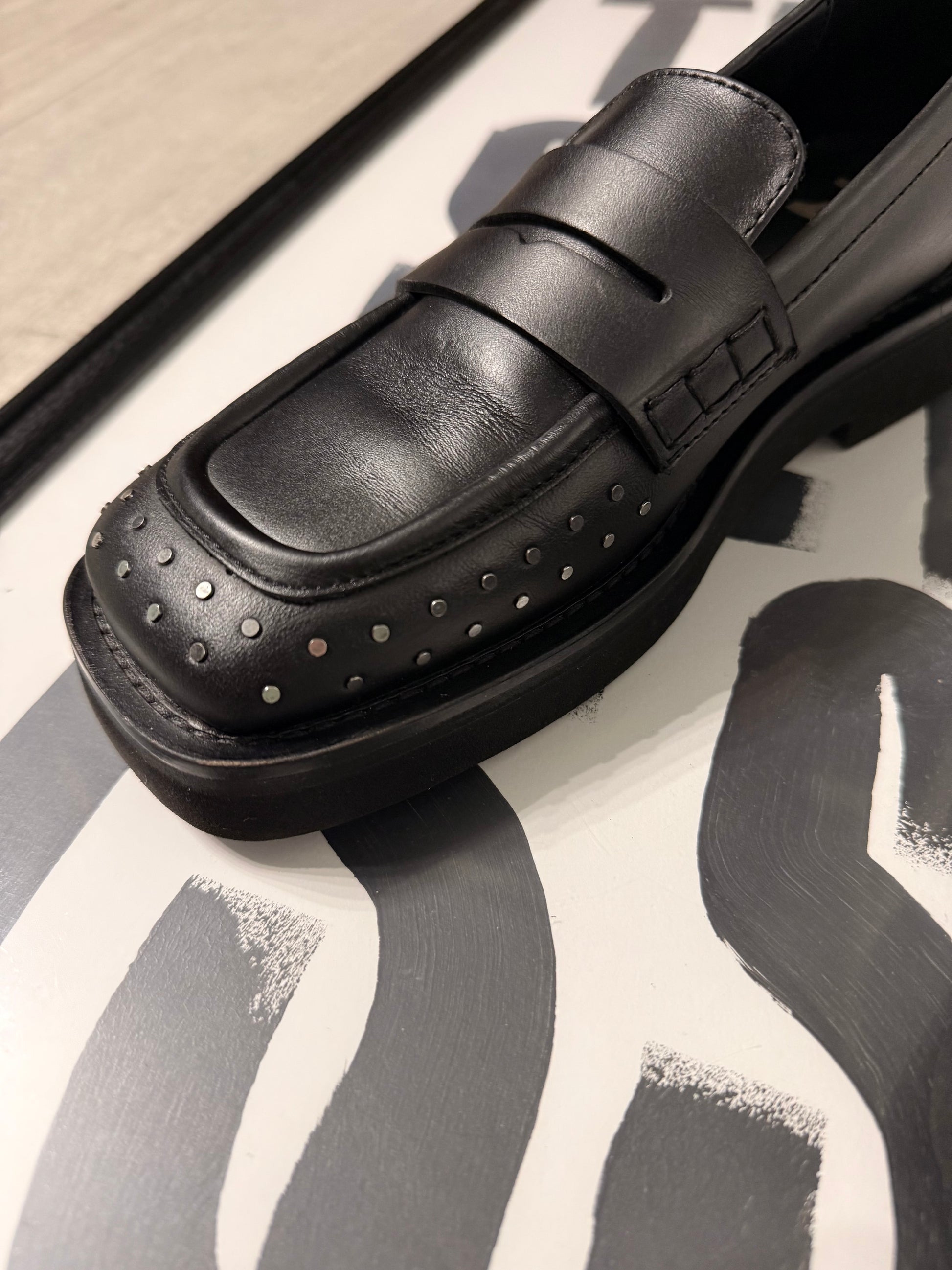 Mocassino punta quadrata borchie N°21 in pelle